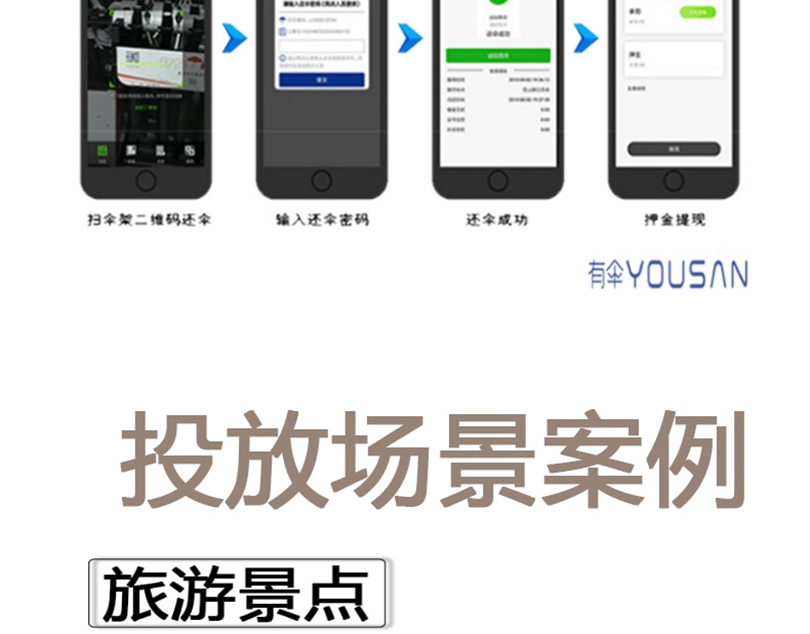 共享雨傘適合投放在商場(chǎng)、超市、景區(qū)、步行街、銀行、地鐵等人流量大的地區(qū),是一種很好的收益模式。
